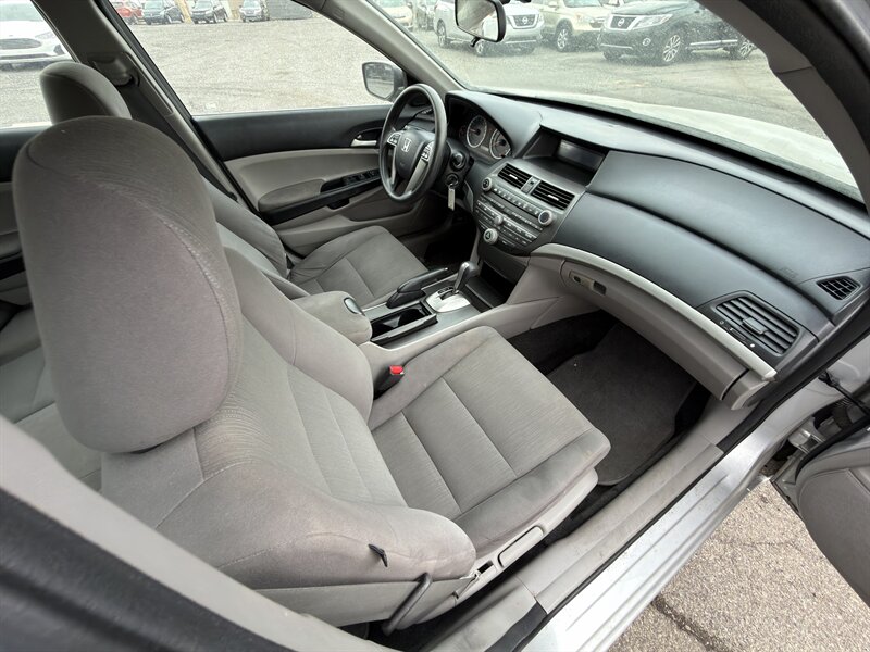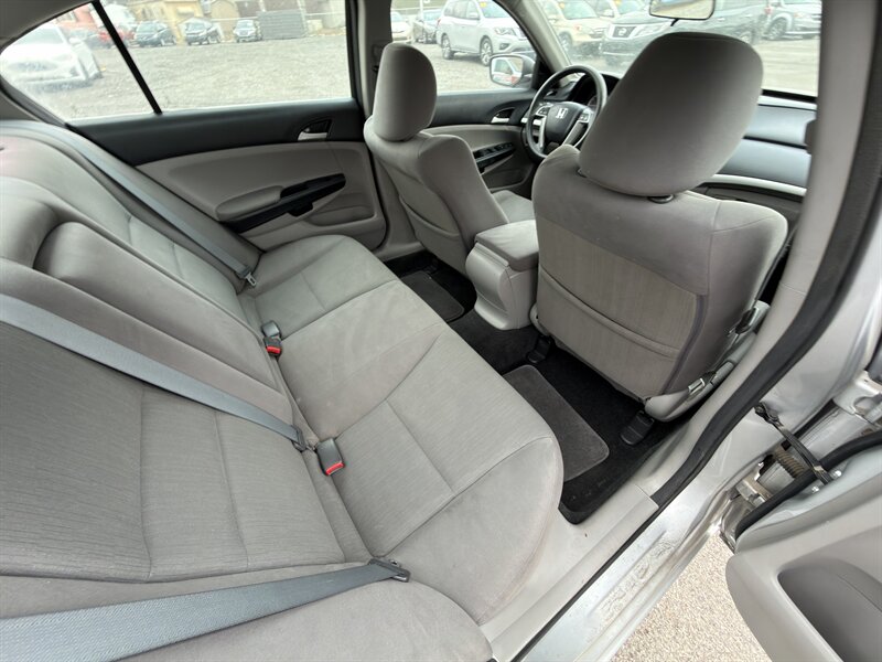 2012 Honda Accord LX — 2.4L I4, 177 hp / 161 ft-lb. Finished in Alabaster Silver Metallic with a Black cloth interior. This well-maintained example has under 138,000 miles (averaging less than 10,000 miles per year), is in excellent overall condition, and EPA-rated at 23 MPG city / 34 MPG highway.