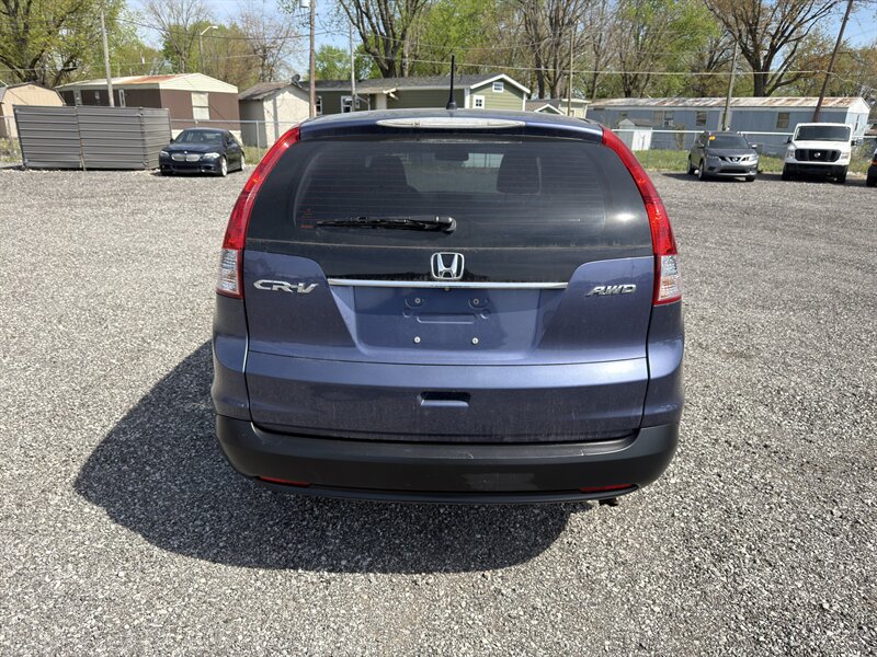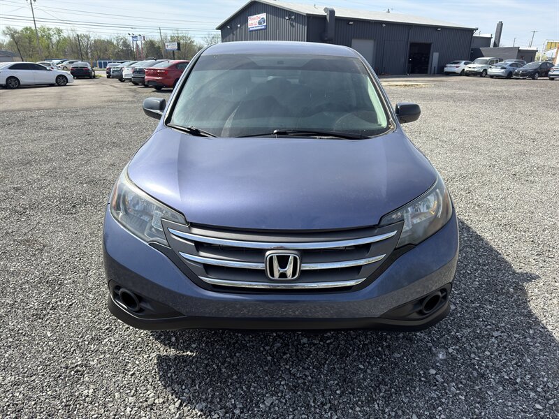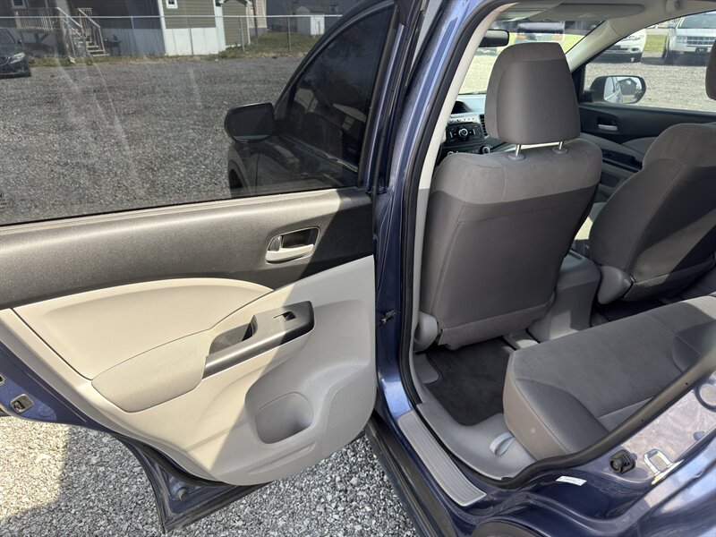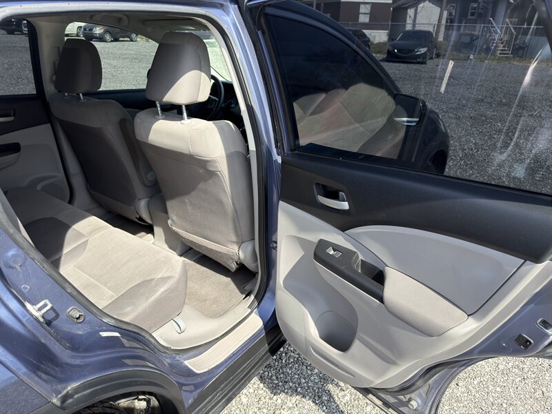 REBUILT TITLE. 2014 Honda CR-V LX in Twilight Blue Metallic with a Gray cloth interior. Powered by a 2.4L I4 (185 hp, 163 lb-ft) and rated at 22 MPG city / 30 MPG highway, this vehicle includes factory-standard features such as air conditioning, power windows and locks, remote keyless entry, cruise control, tilt/telescoping steering column, Bluetooth HandsFreeLink with audio streaming, USB/AUX inputs and AM/FM/CD audio, multi-angle rearview camera, 60/40 split-folding and reclining rear seats, and cloth seating. Standard safety equipment includes ABS, vehicle stability assist with traction control, front-seat side airbags and full-length side curtain airbags, active front head restraints, tire pressure monitoring and LATCH child-seat anchors; the vehicle is in excellent overall condition.